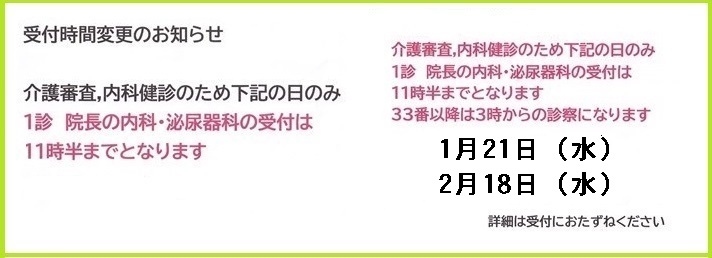 | 人工透析 | 午前7:30〜 | ○ | ○ | ○ | ○ | ○ | ○ | − |