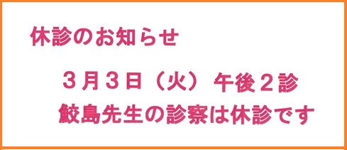 - 鮫島Dr休診のおしらせ